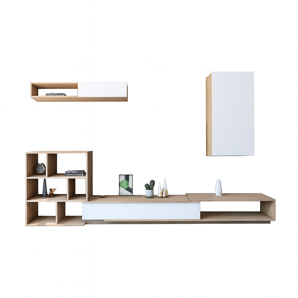 تصميم عصري أنيق يجمع بين اللون الخشبي الطبيعي واللون الأبيض ليتناسب مع مختلف أنماط الديكور العصري.