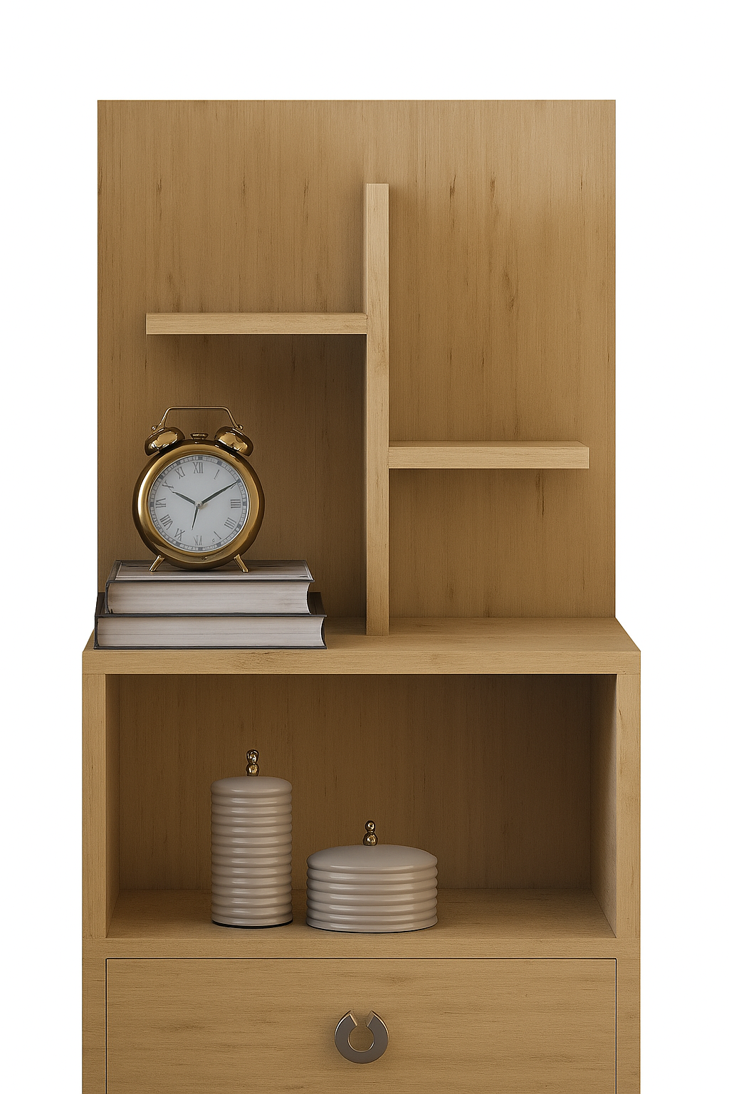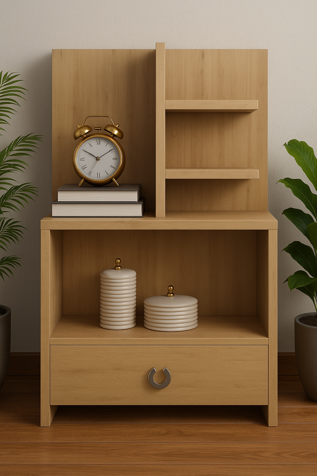 Sturdy top surface suitable for placing clocks, books, or standout decor pieces.