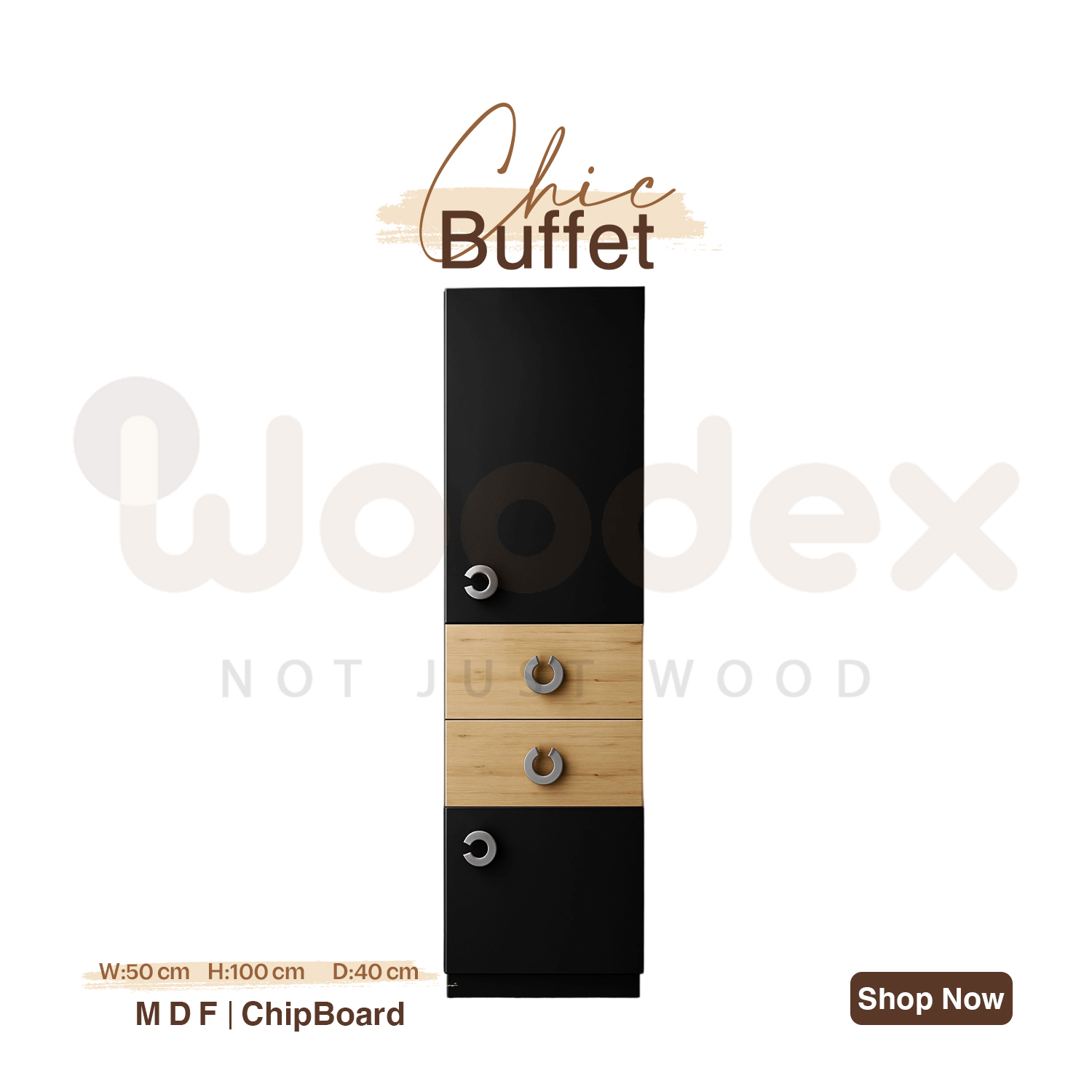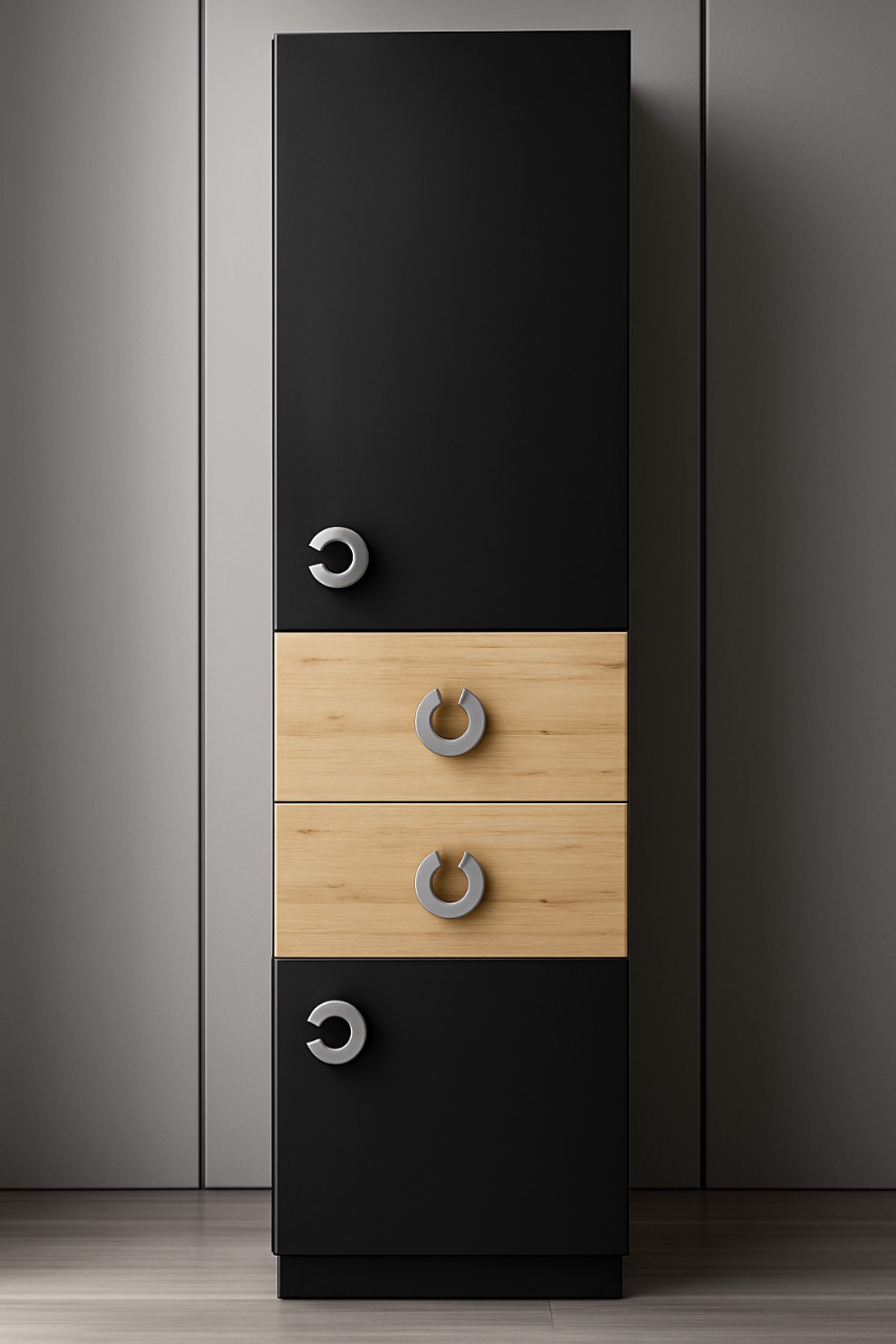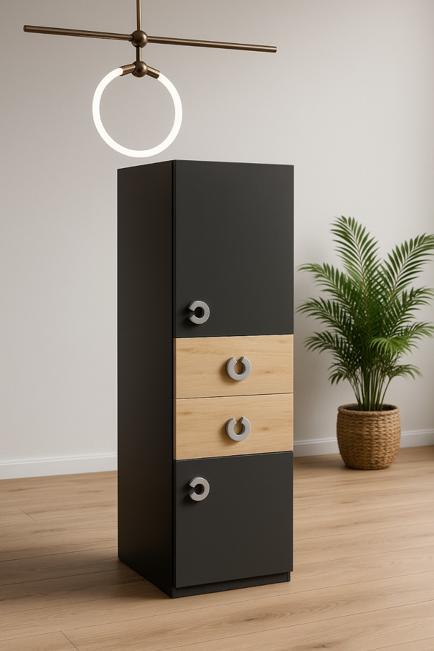 A stylish modern storage cabinet that combines natural light wood with matte black finishes — perfect for contemporary and minimalist spaces. Designed to provide the ideal balance of functionality and aesthetic appeal, making it a great addition to living rooms, offices, or bedrooms.